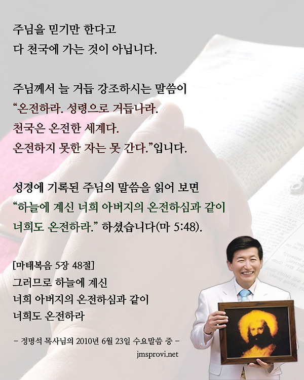 정명석목사는 JMS 정명석 선생은 누구인가? [정명석 선생 소개] 정명석 선생은 누구인가? 글 : JMS 정명석 선생 기독교복음선교회(세칭jms) 정명석 선생은 누구인가? 저(JMS 정명석 선생)는 10대 초반부터 생각했습니다. 인생은 왜 태어났지? 왜 먹어야 되지? 왜 나(JMS 정명석 선생)는 여기 산골짝을 못 벗어나고 살아야 되지? 다른 사람들은 처음부터 좋은 도시에서 태어나 뱀과 엉겅퀴가 있는 무서운 잡초 숲의 환경에서 살지 않고 아예 풀도 없고 뱀도 없는 곳에서 먹을 것을 산같이 쌓아 놓고 시장에서 마음대로 사 먹으면서 사는데, 왜 나(JMS 정명석 선생)는 뒷산에 등 기대고 앞산에 발을 쭉 뻗으면 닿을 정도로 좁고 답답한 곳에서 태어나 살아야 되지?’ 생각했습니다. 그리고 ‘환경 문제를 해결하려면 이곳 내 고향을 떠나야 된다.’ 결심했습.. -