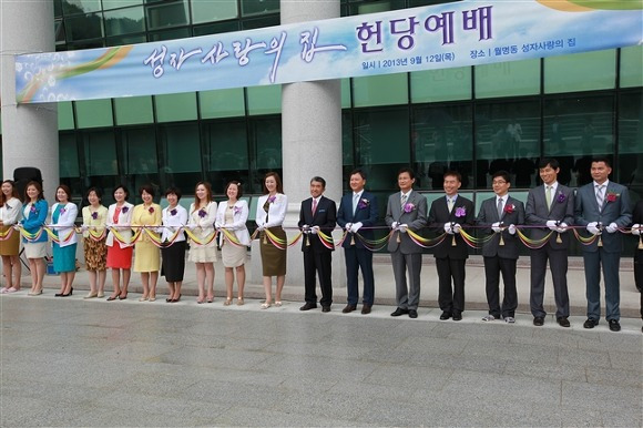 월명동소식 성자 사랑의 집 헌당예배 섭리 역사 35년 만에 처음으로 완성된 공식 건물인 성자 사랑의 집 헌당예배와 헌당식이 12일 오전 성자 사랑의 집 본당에서 약 3시간에 걸쳐 진행되었다. 이 행사를 위해 전국에서 교역자들과 각 부서대표 지도자 등 약 1000여명이 넘게 참석했다. 1부 성자 사랑의 집 헌당예배는 약 1시간 정도 진행되었으며 정명석 목사가 보내준 헌당예배 말씀을 정조은 목사가 대언했다. 정명석 목사는 말씀을 통해 성자 사랑의 집에 얽힌 이야기를 전해주었다. 정명석 목사는 성자 주님의 구상을 받기 위해 2010년부터 건축책을 보면서 건물을 그려보았고 건축전문가 섭리회원들과 건물에 대해 설계하던 중 건물을 '성자 주님의 뜻대로 아름답게 신비 웅장하게 지어라' 라는 감동을 받게 되었다. 야심작이 6번의 작업 끝에 완성한 것처럼..