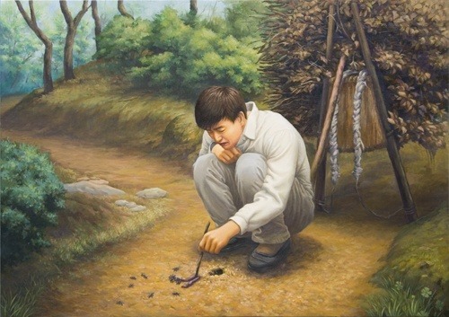 지게 짐을 세워놓고 인생을 한하며 피곤에 지쳐 웅크리고 앉아 있을 때 개미들이 열심히 일하는 것을 보게 되었다.