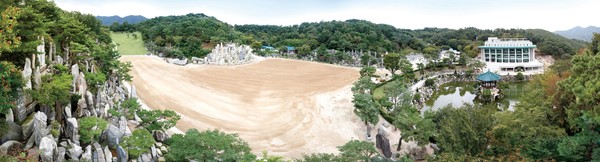 지형과 산세가 뛰어난 데다, 시원하게 펼쳐진 잔디밭과 국제 규격 축구장 보다 큰 운동장, 웅장한 돌 조경과 폭포수들, 아름다운 호수와 전망이 빼어난 곳마다 자리잡은 팔각정, 수많은 불치의 병을 낫게 한 약수, 깨끗한 산소를 제공하는 소나무 산책로, 거대하고 신비한 형상 바위들… 이러한 자연의 걸작들이 조화롭게 모여 그야말로 극치의 비경을 이루었다.