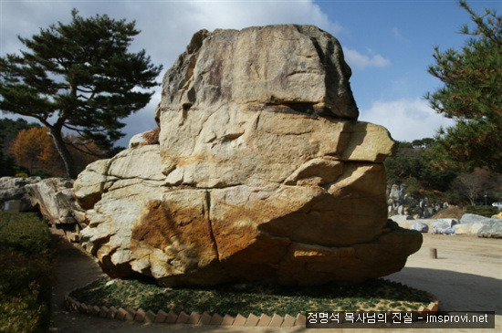 [월명동 이야기] 모두 보고 공감하고 좋아하며 기념할 돌을 달라고 했습니다 글 : 정명석 목사님 2012년이 되어 감동되어 성자께 월명동에 형상이 있는 큰 돌을 달라고 기도했습니다.모두 보고 공감하고 좋아하며 기념할 돌을 달라고 했습니다.독수리 형상 바위나, 성자를 상징하는 돌이나, 삼위일체를 상징한 돌 작품을 달라고 기도했습니다. 그러다가 을 공사하면서,그곳에서 파낸 흙과 돌을 실어다 매립하는 곳에 갔을 때 논 위에 솟은 돌을 발견하게 되었습니다.감동도 되고, 그대로 묻어 버리기에는 아까워서 그 돌을 파냈습니다.그리고 월명동으로 가져온 돌이 바로 입니다. 처음에 그 돌을 실어 올 때 찍은 사진을 보니,눈에 잘 띄는 형상이 지금 운동장 반대편 쪽으로 가 있는 뒷모습이었습니다.사진을 보고, 가장 또렷한 형..