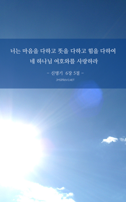 신앙자료 [성경이미지] 신명기 6장 5절, 너는 마음을 다하고 뜻을 다하고 힘을 다하여 네 하나님 여호와를 사랑하라 [성경이미지] 너는 마음을 다하고 뜻을 다하고 힘을 다하여 네 하나님 여호와를 사랑하라 - 신명기 6장 5절 - jmsprovi.net 좋은말, 좋은글, 좋은생각, 인생멘토, 잠언글이 있는 곳 [성경이미지 더 보기]- [성경이미지] 요한복음 14장 15절, 너희가 나를 사랑하면 나의 계명을 지키리라- 궁금한 것이 있나요? 교회를 찾고 계신가요? 말씀 들어 보고 싶으세요? [ 신청하기 ]