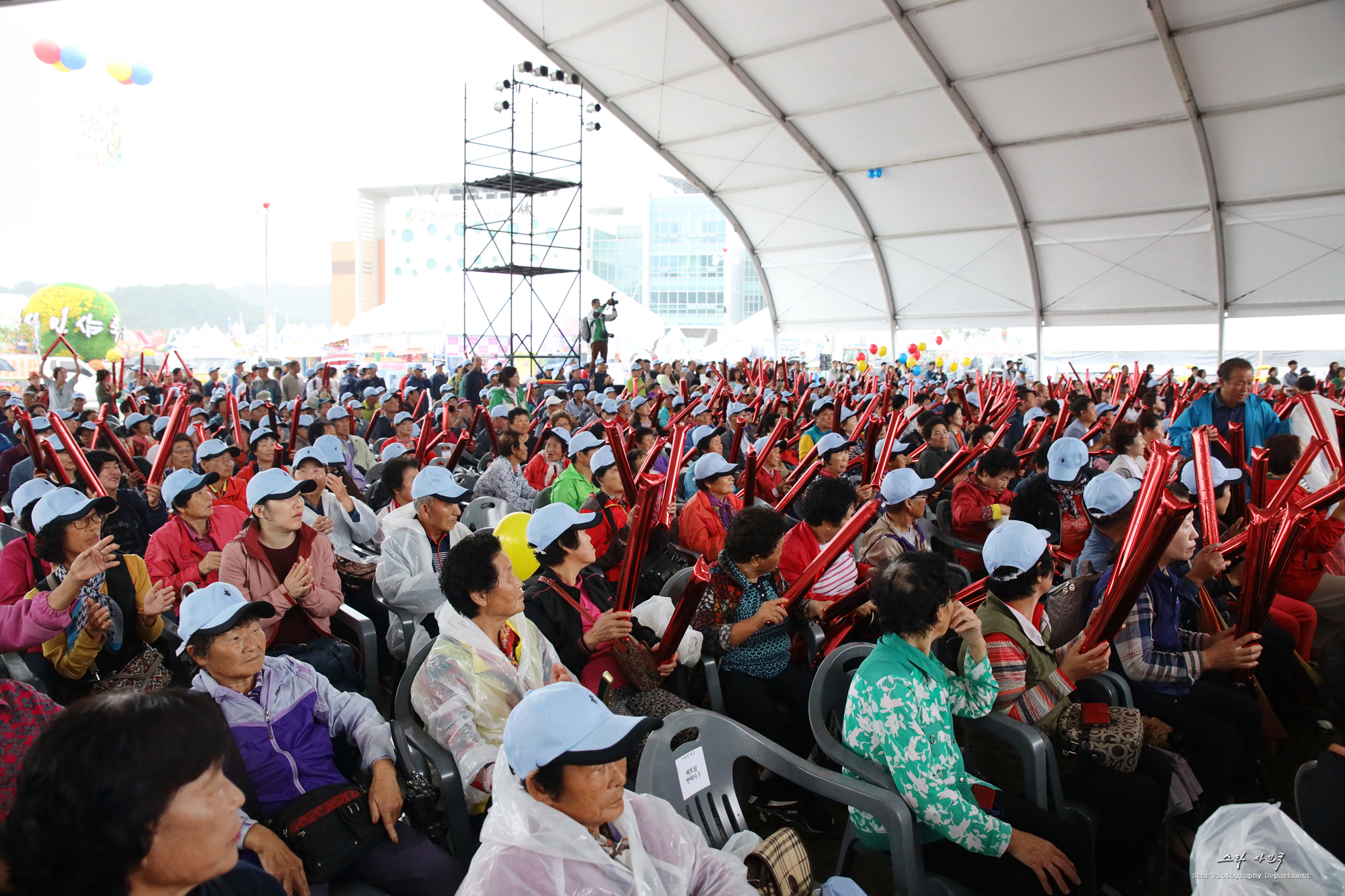 퍼레이드가 끝나고 주무대에서 본격적인 행사가 진행됐다. 문정우 군수, 서명하 면장, 김종학 의장 및 의원들과 관계기관들의 인사말을 듣고 진산초등학생부터 중 ∙ 장년, 어르신들로 이뤄진 농악패의 놀이가 흥을 돋웠다.