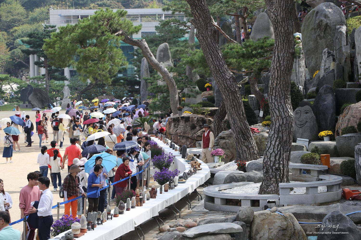 정 총재는 올해 돌 축제를 위해 소나무 11그루를 특별히 심고 돌도 직접 단장하며 땀방울을 흘렸다. 축제에서는 위용 넘치는 거대 소나무와 최대 350년이 된 분재 ‘작품 소나무’ 수백 점도 관람할 수 있다.